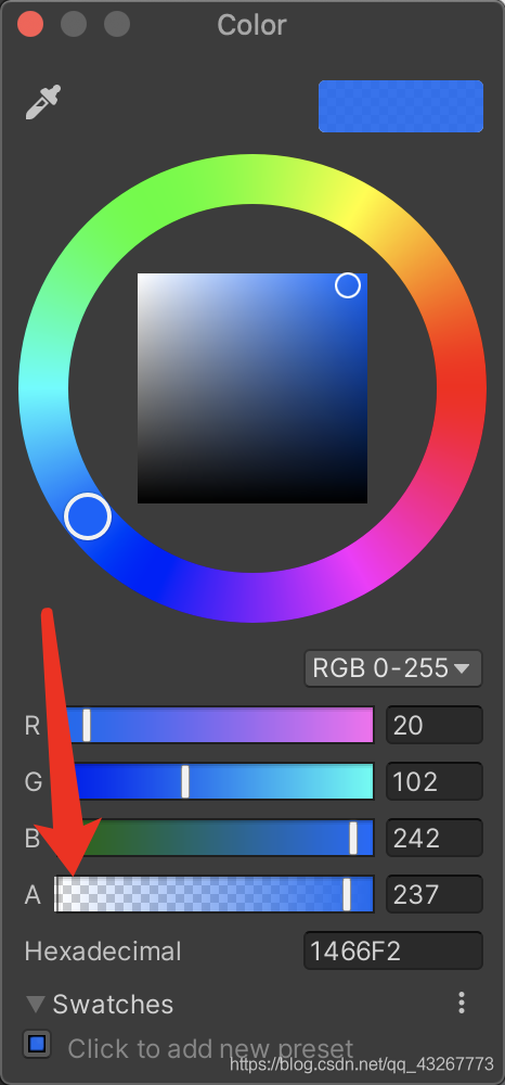 而后能够批改 `rending mode` ,能够变换对象的各种属性,这里抉择 `transparent`