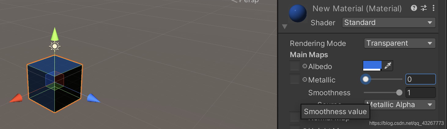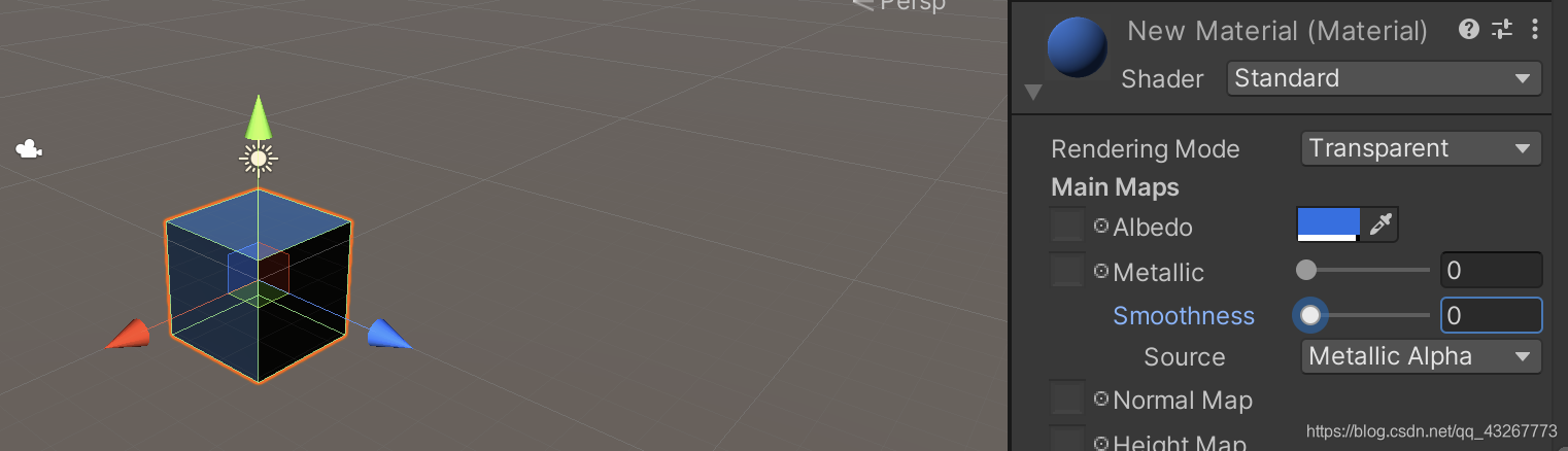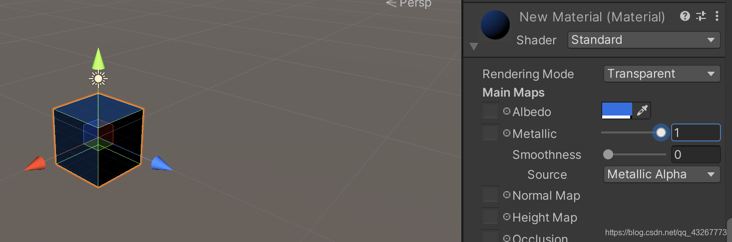 增加一个 `cube` 游戏对象,而后新建一个 `materials` 退出到 `cube` 中而后进行批改 `shader` 值来查看游戏对象的变动